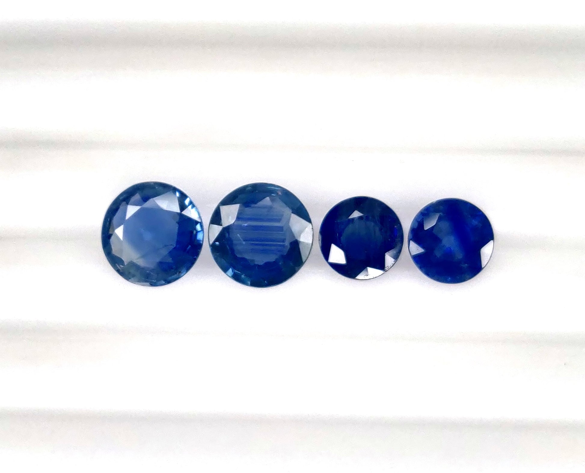 Gemstone: Natural Blue SapphireTreatment: HeatedOrigin: KanchanaburiShape: RoundSize: 7.50-6.*3.*-3.40 mm Weight: 5.15 cts/4 pcsColor: C. Royal Blue