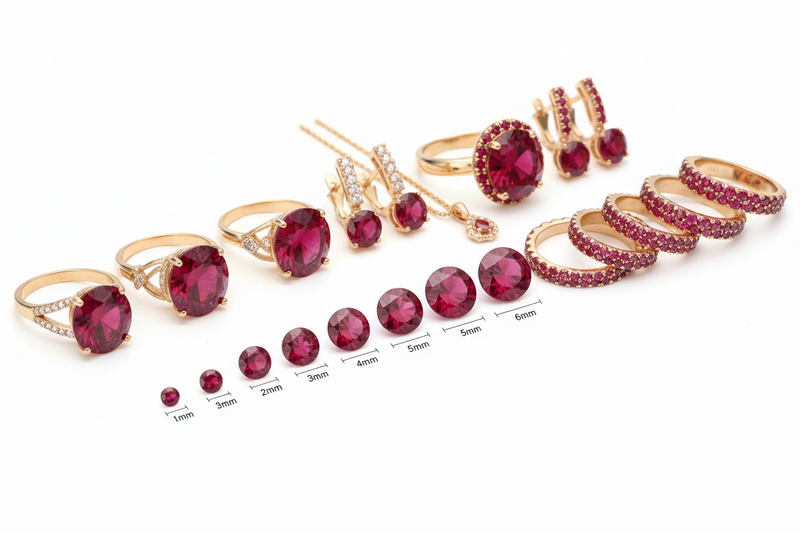 Round rubies are widely used in rings, earrings, pendants, and pavé jewelry. In calibrated gemstones, round rubies are available in many sizes such as 1 mm, 2 mm, 3 mm, 4 mm, 5 mm, and 6 mm, making them suitable for both melee gemstones and center stones.