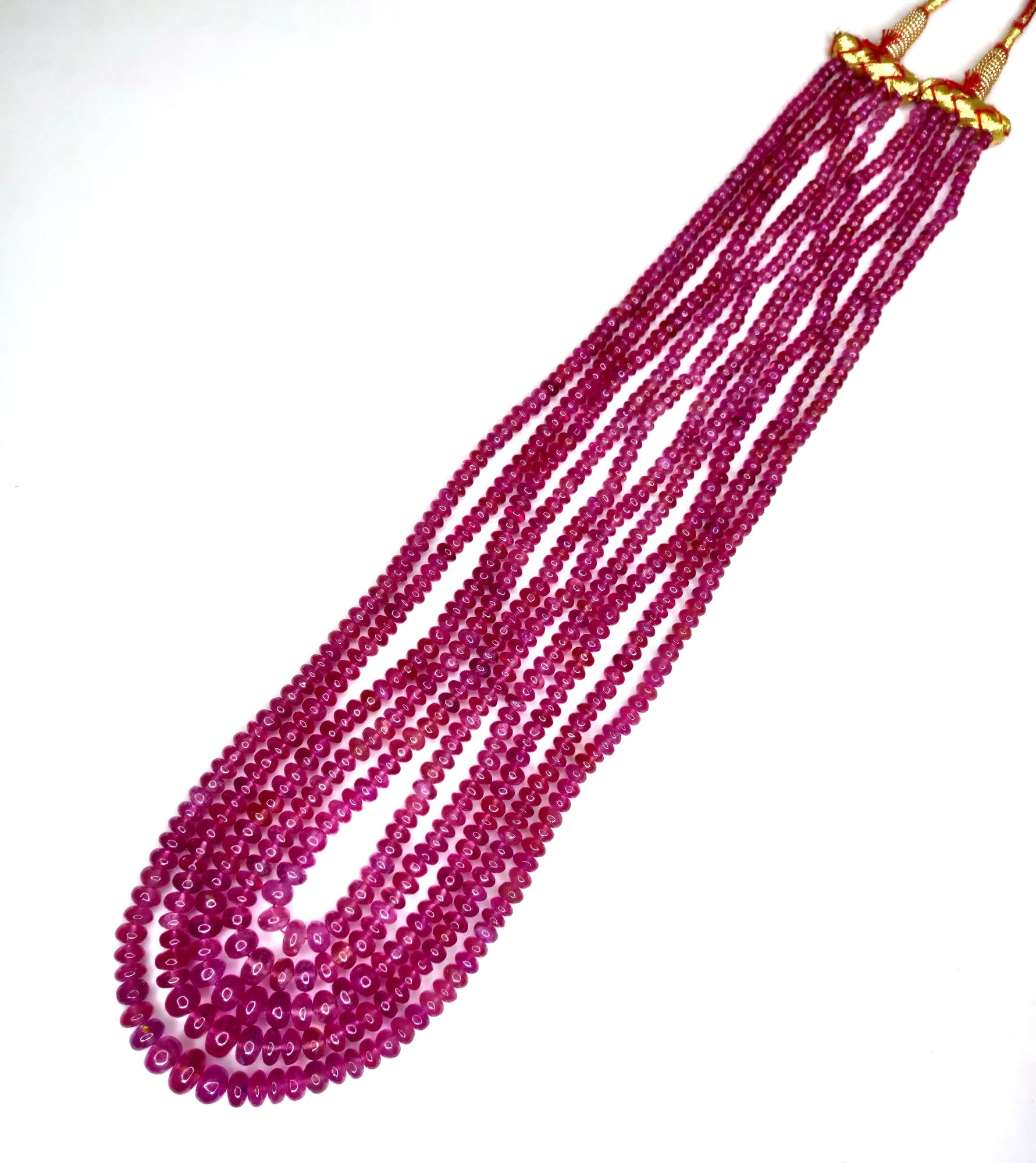 Gemstone: Natural RubyTreatment: Fissure FilledOrigin: BangkokShape: RoundWeight: 537.5 cts/5 lineColor: E. Redish PinkQuality: 3. Slight InclusionCertificate: Non-Certified