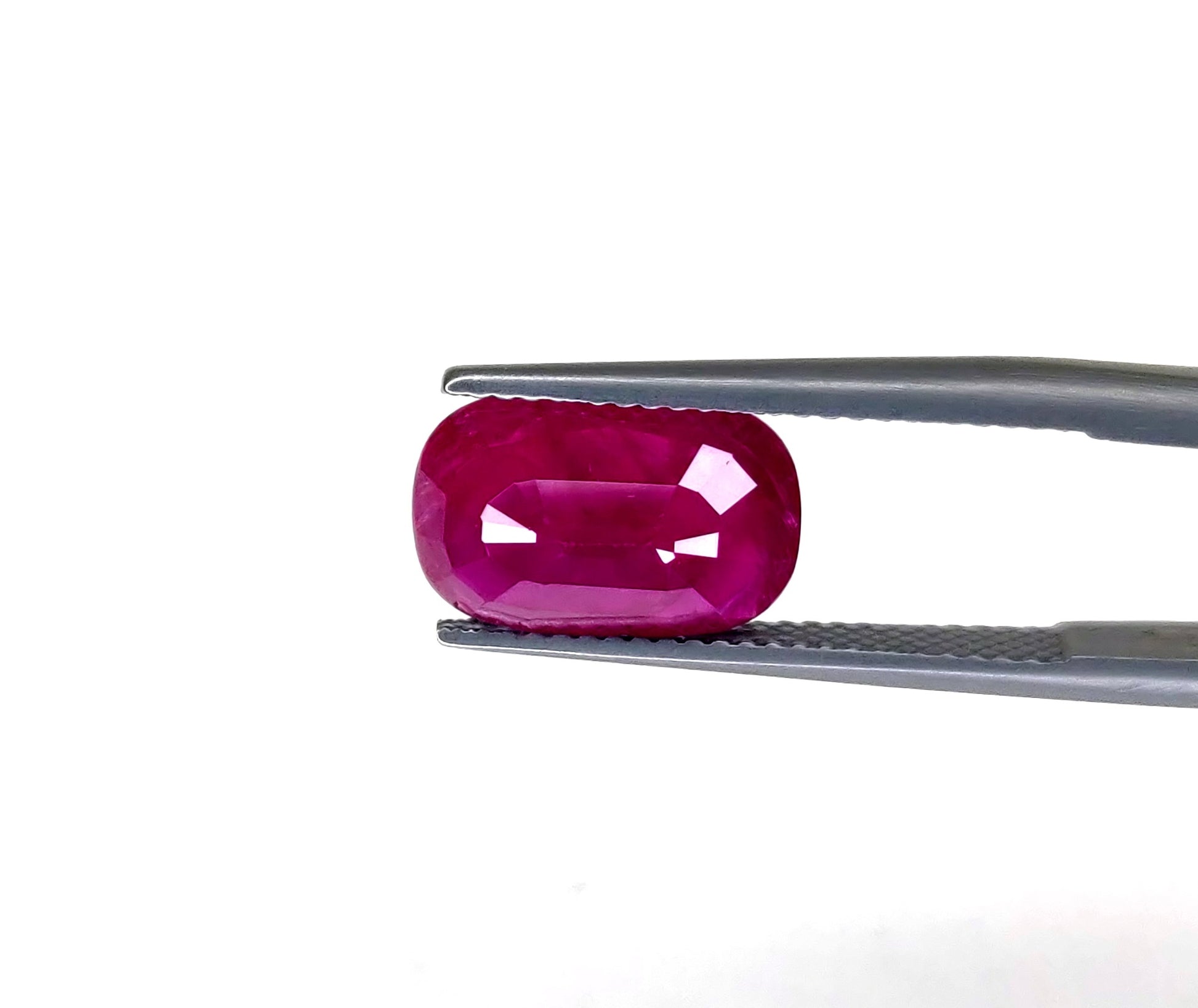 Gemstone: Natural Burma Ruby Oval CushionTreatment: HeatedOrigin: BurmaShape: OvalSize: 12.5*8.3*4.6Weight: 4.56 cts/1.00 pcsColor: C. Vivid RedQuality: Moderate Inclusion