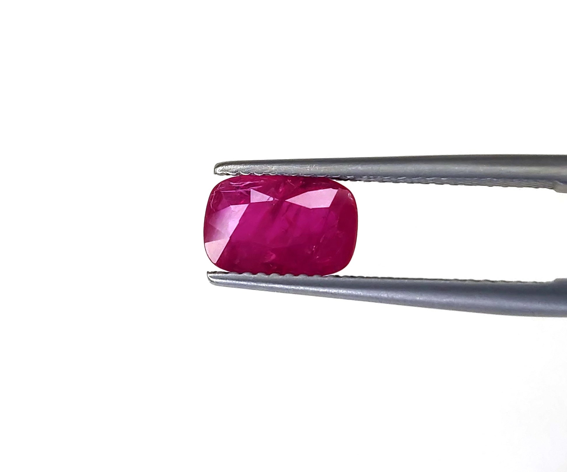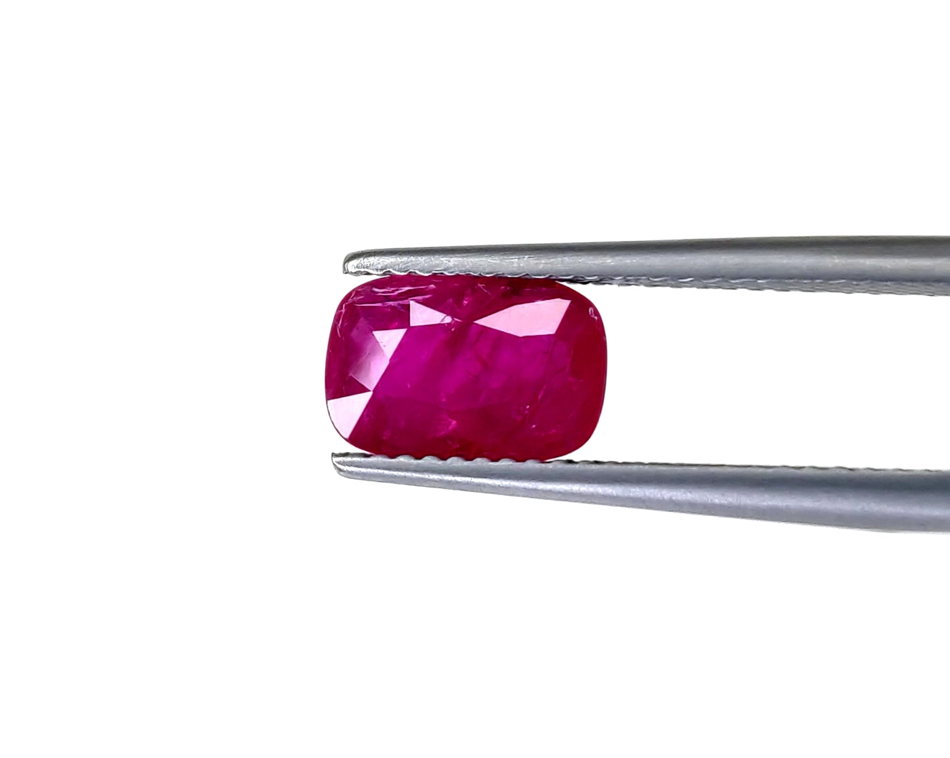 Gemstone: Natural RubyTreatment: HeatedOrigin: MozambiqueShape: CushionWeight: 1.78 cts/1 pcsColor: C. Vivid RedQuality: Moderate Inclusion